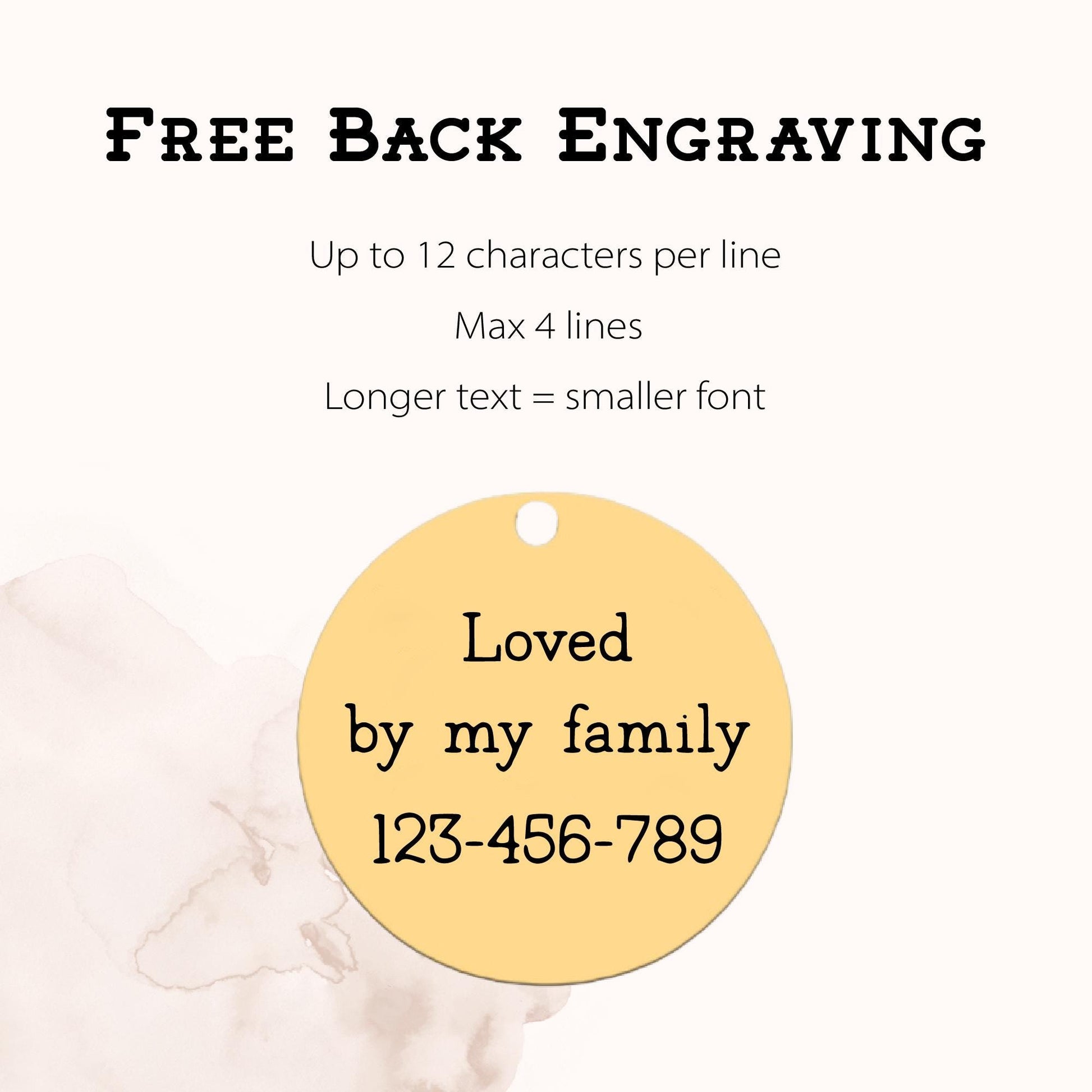 What makes it special? Personalized Engraving on Both Sides (Free!): Customize your tag with your pet’s name on the front and important details on the back—such as your phone number, address, or even a special message.